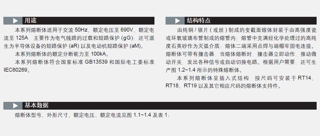 本系列熔断体符合国家标准GB13539 和国际电工委标准