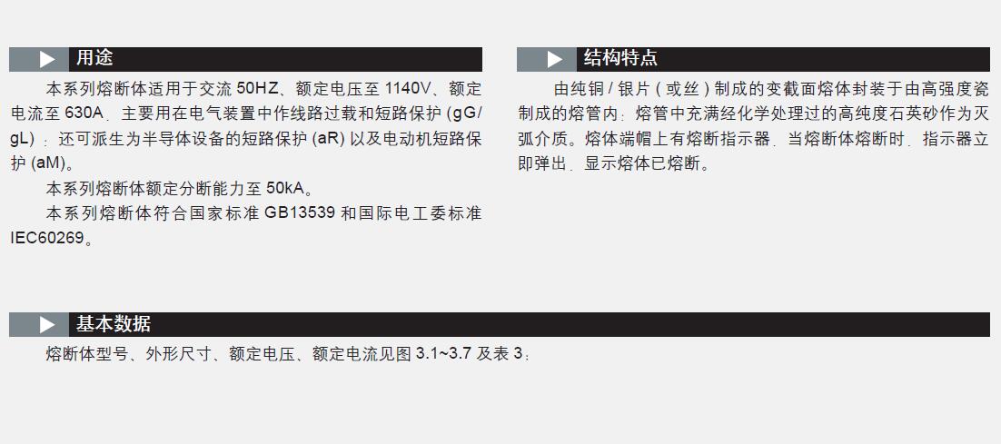 本系列熔断体适用于交流50HZ、额定电压至1140V、额定