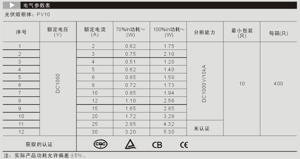 本系列熔断器适用于太阳能光伏系统(Photovotaic System,简称PV),主要应用于光伏汇流箱中,作为光伏发电器件及其他半导体设备的短路和过载保护,从而起到保护整体太阳能光伏板的作用。